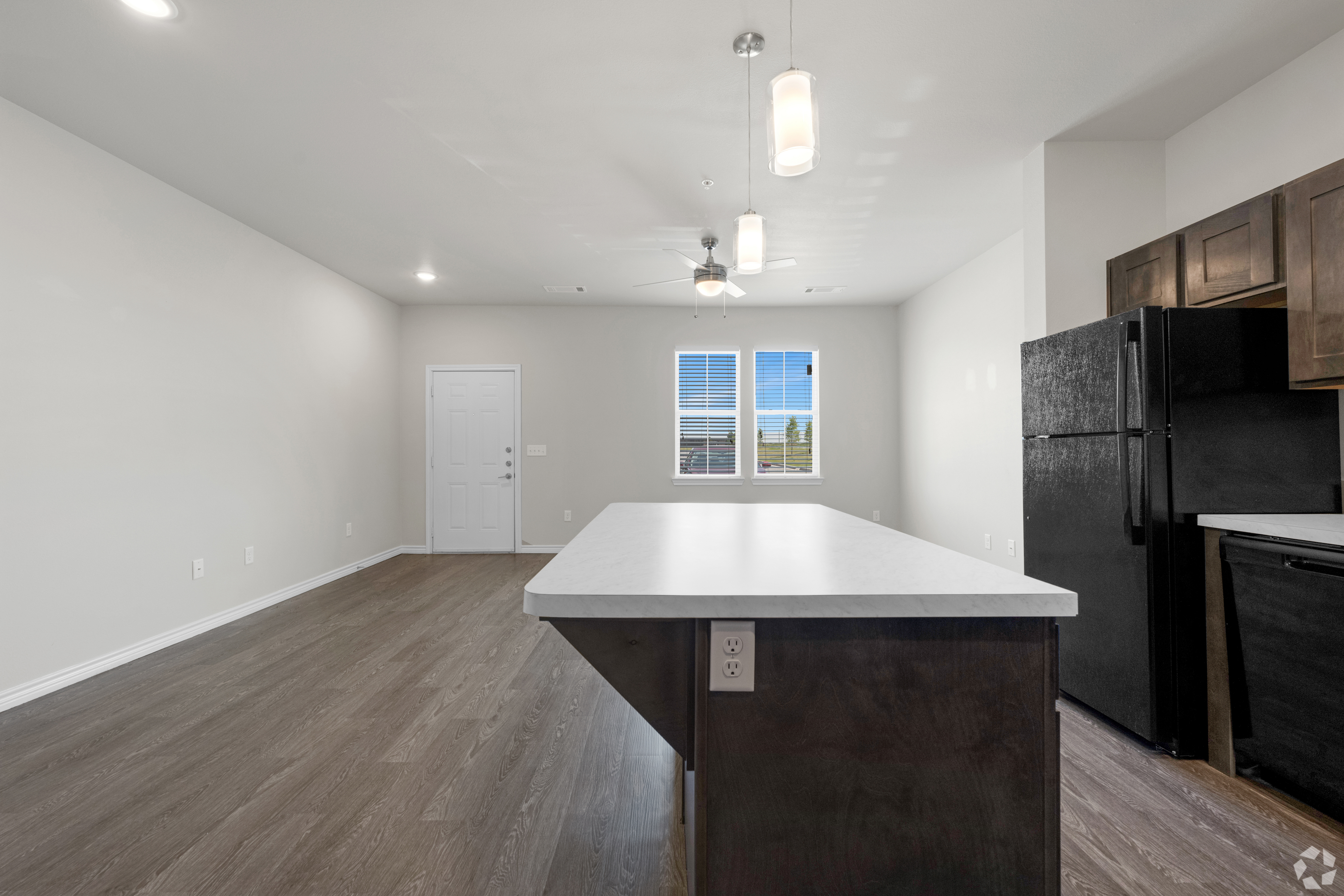 Our single level luxury apartments feature modern high-grade finishes such as faux wood flooring, kitchen islands, backyards, and more - all at a great cost.